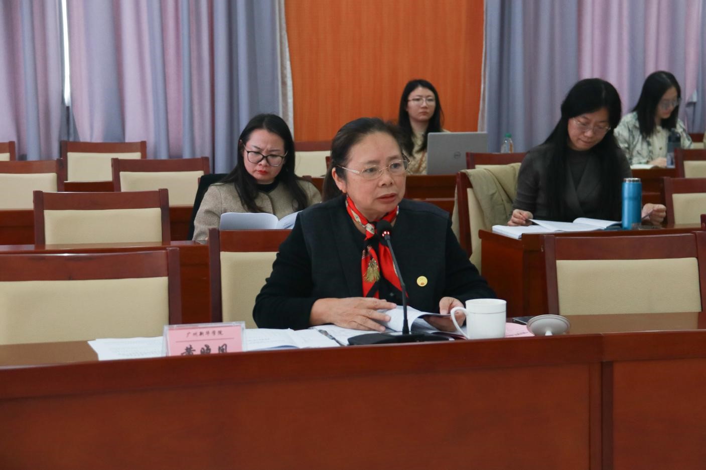 2025年11月20日,我校在广州校区办公楼第一会议室召开2025年度教育部哲学社会科学研究重大课题攻关项目专家指导会。学校党委书记郝登峰、副校长马龙海、副校长李毅、校长助理蔡映辉,华南师范大学徐思教授、广东财经大学黄晓凤教授、广东外语外贸大学唐小松教授等特邀专家出席,申报负责人及相关人员参会。本次会议由王庭槐校长主持。
